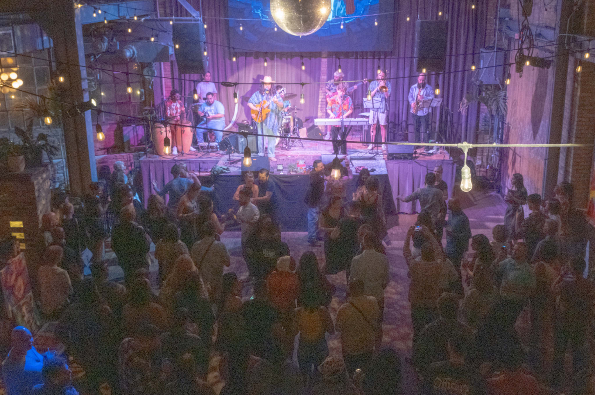 Los Mitoteros are a Milwaukee-based Latin ensemble built around rhythm, melody, and a little beautiful chaos. The core group moves like a tight band—drums, congas, bass, guitar, and keys—then expands or strips down depending on the room, with a rotating horn section when the moment calls for it. Rooted in Latin jazz but never stuck there, their sets weave cumbia, boleros, bossa, and regional Mexican influences into something dance-forward and distinctly live—grooves that stretch, turn, and snap back into the pocket.